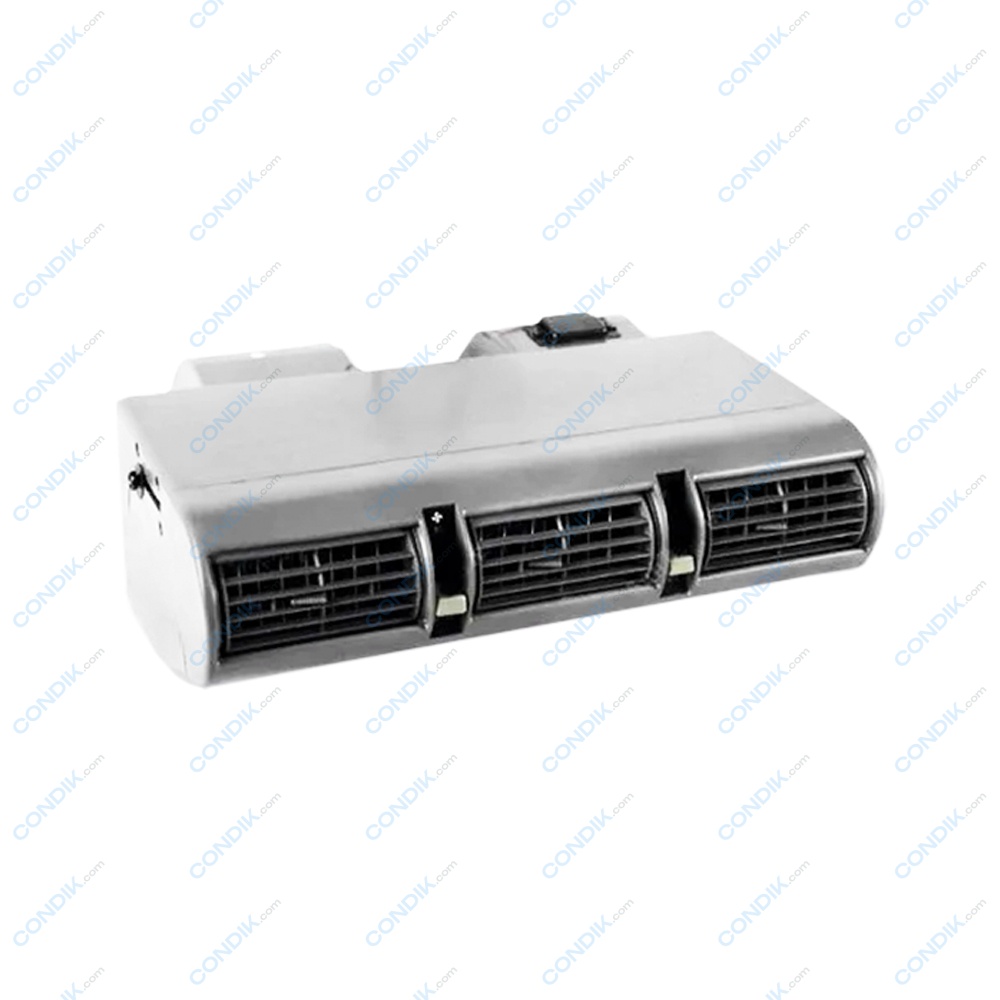 Испаритель имеет подвесную конструкцию и оснащен всем необходимым для эффективной работы: вентиляторной панелью на 12 В, переключателем скоростей, электронным термостатом и терморегулирующим вентилем (TVR).