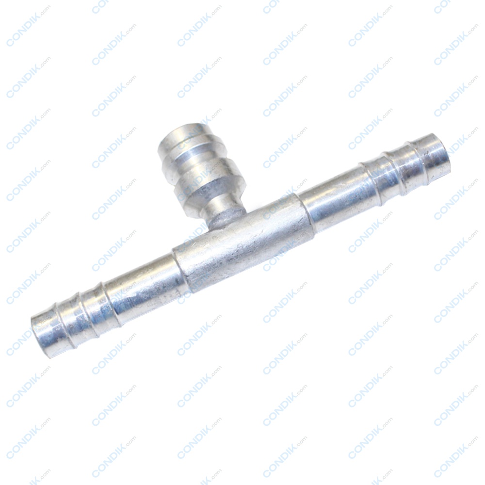 № 8 фітінг з'єднувальний з сервісним портом — це сполучний елемент, призначений для з’єднання шлангів у системі автокондиціонера. Виготовляється з алюмінію, що гарантує довготривалу та надійну експлуатацію. Фітінг з'єднувальний з сервісним портом із зовнішньою різьбою під шланг 10 мм гарантує герметичне з’єднання, стійке до високого тиску, перепадів температур та вібрацій.